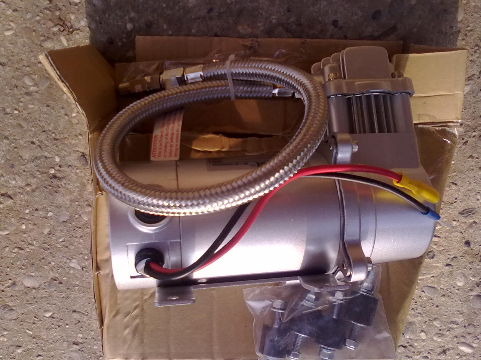 Pri originalnem AIR RIDE podvozju je bil priložen 12V kompresor in 11-litrski aluminijasti rezervoar. To bi moralo zadostovati za 4 zračne blazine in krmiljenje le teh. Ker sem na vozilo dodal več pnevmatičnih cilindrov in ventilov, sem primoran kompresorsko enoto razširiti. K obstoječemu kompresorju bom dodal še en dodatni kompresor podobnih karakteristik. Obstoječi rezervoar bom nadomestil z večjim, 25-litrskim, kar bi moralo zadovoljiti moje potrebe po stisnjenem zraku.